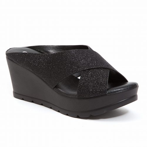 CRISS CROSS METALLIC WEDGE SLIDE.